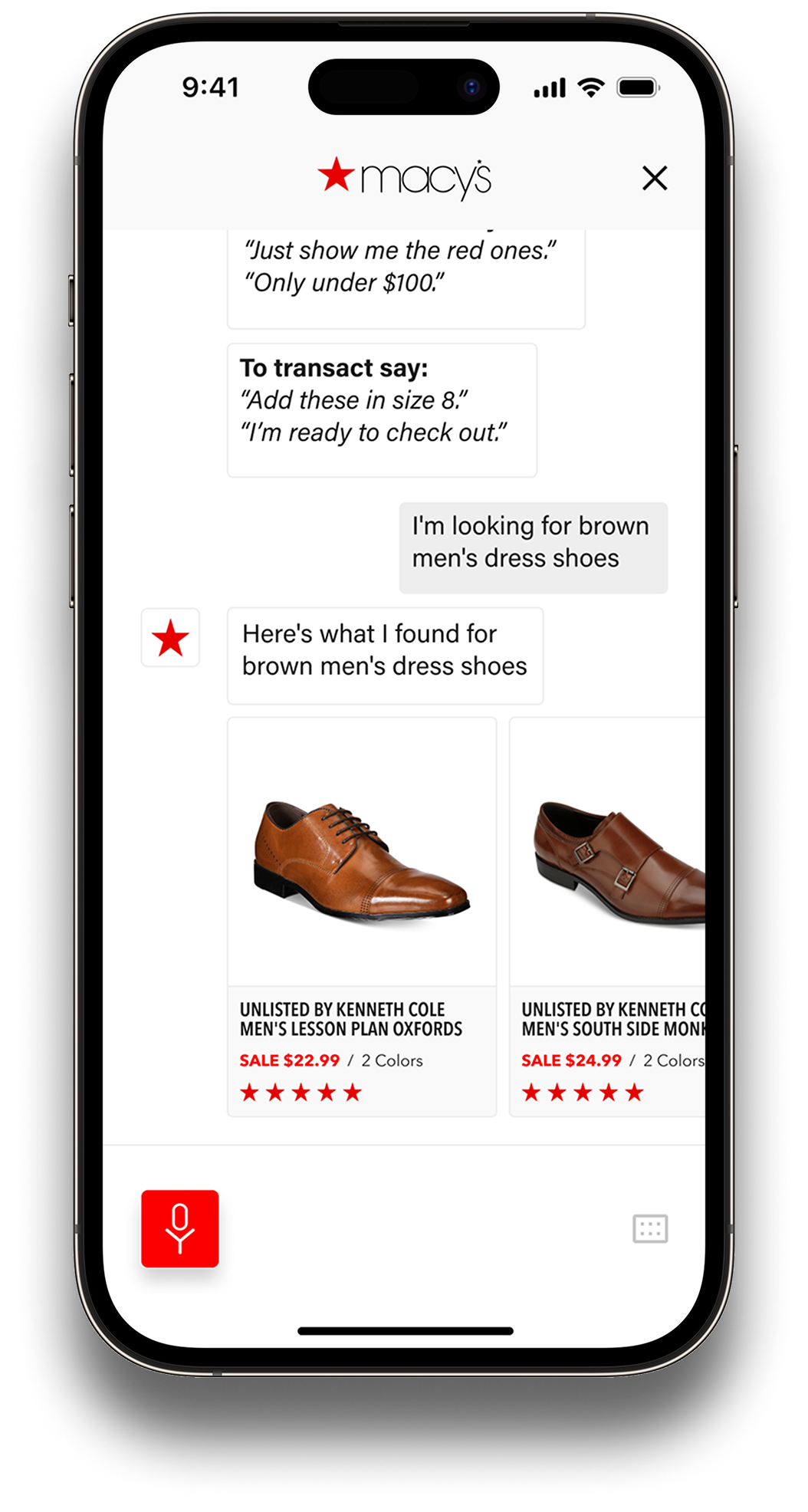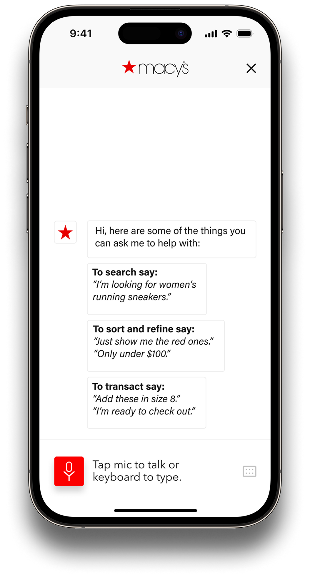 For Macy’s, we built a voice-first chat assistant within their app, allowing users to browse products, find deals, and enhance their shopping experience through seamless, hands-free interaction.